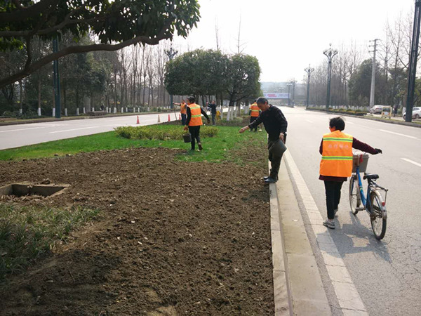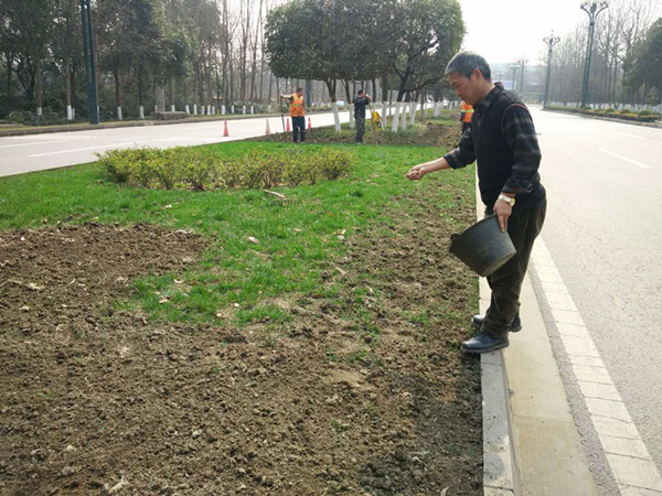 眼下正值春季植樹綠化的最佳季節(jié),公司抓緊時(shí)間對(duì)損毀的草坪進(jìn)行補(bǔ)植綠化,美化市容生態(tài)環(huán)境。 3月7日,公司管護(hù)部負(fù)責(zé)人組織工人對(duì)我公司管護(hù)區(qū)域蜀龍路三期裸土進(jìn)行草坪補(bǔ)植,此次補(bǔ)植采用機(jī)械翻耕土壤,人工撒播草籽的方法進(jìn)行補(bǔ)植,預(yù)計(jì)7-15天內(nèi)可見補(bǔ)植效果。
