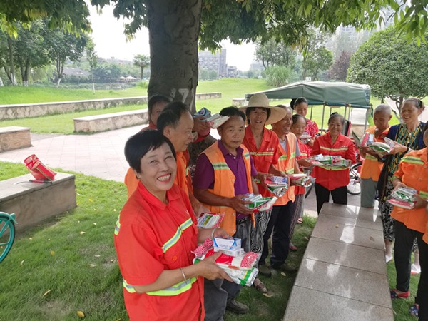 高溫季節(jié) 公司為一線員工發(fā)放防暑降溫物品